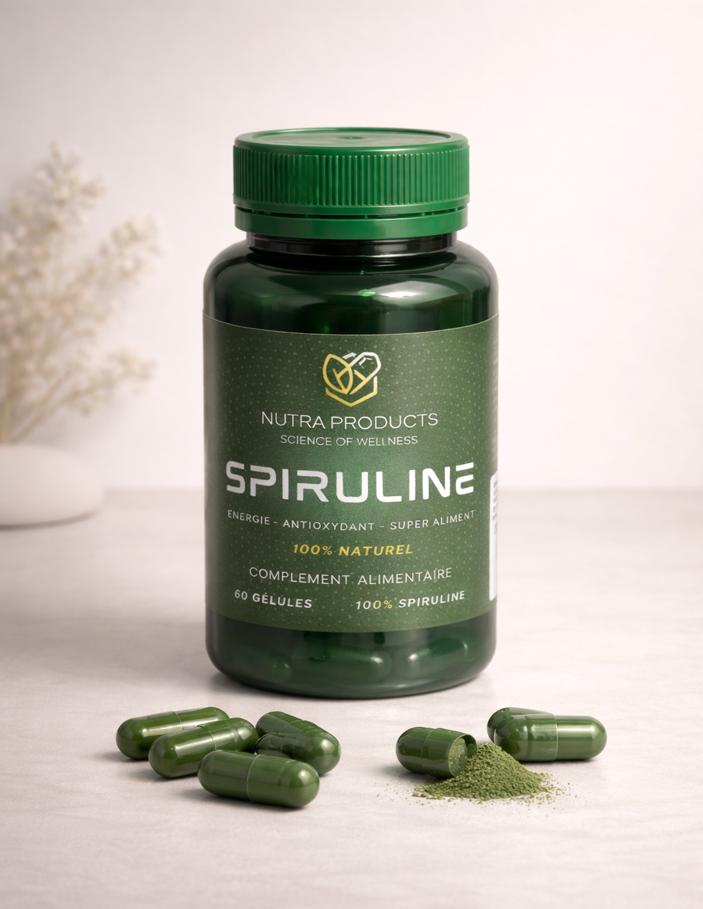 100% spiruline (Arthrospira platensis) issue de l’agriculture biologique.
